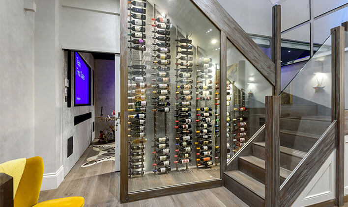 With a glass wine cellar, you can space-efficiently store hundreds of bottles in a concealed, temperature-controlled environment that also has the bonus of looking chic.